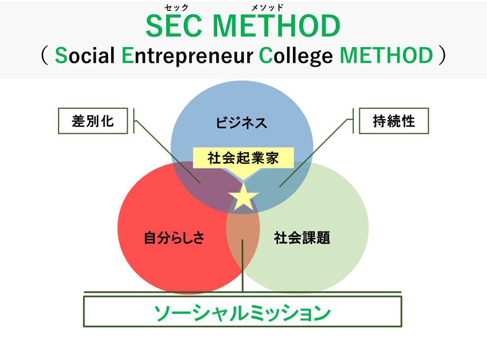 10年以上の社会起業家育成のノウハウと学長林の30年の起業家としての経験、哲学を融合させたゼロから社会起業家を育成する独自手法SECMETHODをベースとした効果的、効率的なカリキュラムを提供します
