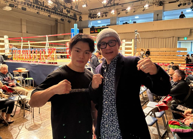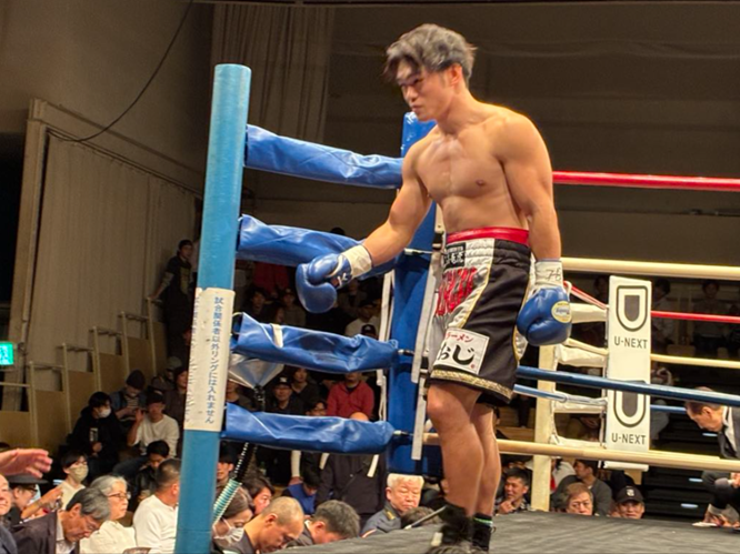 次にウェルター級でリングに上がったのが石井竜虎選手。天性のハードパンチャーで、どちらかというと寡黙な好青年なのだが、練習には常に100%で臨み、いくつものサンドバッグを破壊してきた。彼のバッグ打ちは側で見ていても、空恐ろしいくらいだ。出稽古スパーでも国内ランカークラスをバタバタと倒す最強の4回戦ボクサーだ。しかし彼は22の若さで挫折を知っている。今回はそれがプラスに出ると思っていた。実力的には頭一つ抜けているので、前回のような油断さえしなければ絶対に勝てる。前回のというのは、龍虎選手が19歳だった3年前の話。東日本新人王戦の決勝で、不覚の逆転KO負けを喫したのだ。初回に得意の左フックで豪快なダウンを奪うも、一瞬の隙を突かれ3Rに逆転KOを喰らってしまったのだ。そして一時期ジムから消えてしまったが、2年間のブランクを乗り切り、ついにジムに戻って来た。ボクシングに専念する覚悟を固めてのリターンだ。身体も一回り大きくなり、野性味はさらに増した。名は体を表すとはよく言ったもので、本当にドラゴン(竜)&タイガー(虎)だ。普段はシャイで大人しいのだが、試合の時の迫力は強烈で、リングで向き合う相手選手には気の毒なほどだ。対戦相手のダルシャン選手は、ネパール出身で身長、リーチとも竜虎選手より7センチも勝る。ともにKO率100%。しかし挫折を克服した竜虎選手に怖いものは無い。初回、互いにしばらく様子を見た後、竜虎選手が前に出てロープに詰める。得意の左右フックを強打すると、それがもろにヒットしダルシャン選手はふらつく。するとダルシャン選手のコーナーからタオルの投入。いきなりのジ・エンドだ。納得のゆかない本人は、セコンドに不満の意をアピールするが、先方の会長は頭を振ってなだめた。ちょっと早すぎる判断だとも思ったが、あのまま続けていたら彼は担架送りになっていた気がする。それほどまでに竜虎選手の破壊力は凄まじい。2年の遠回りは決して無駄ではなかった。この新人王獲得を足がかりに日本王座を奪取し、その勢いで一気に世界の頂点に駆け上って欲しい。