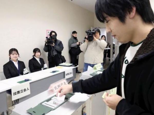 学内投票所で投票する若者たち(読売新聞オンライン)