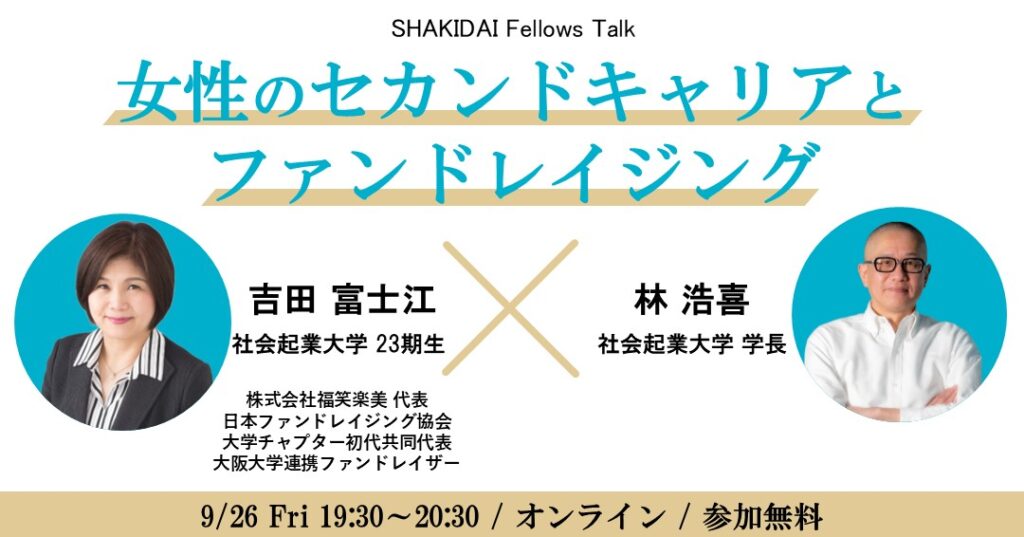 SHAKIDAI Fellows Talkは、社会起業大学の卒業生と学長の林浩喜によるトークセッションです。
