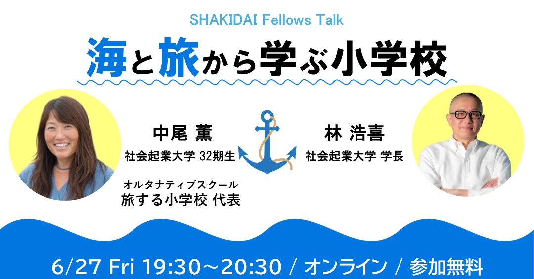 【アーカイブ動画】海と旅から学ぶ小学校 6/27(金)19:30~20:30 SHAKIDAI Fellows Talk